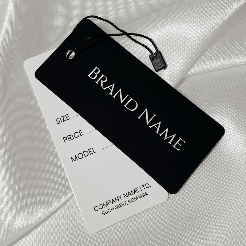 Etiqueta personalizada de cartón HT-M112 para los productos textiles como ropa de mujer, ropa de hombre y accesorios.