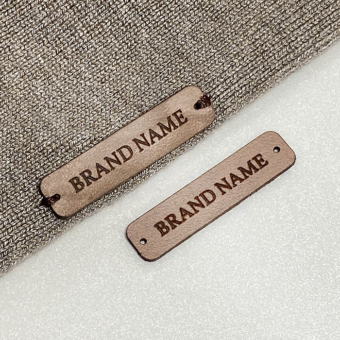 Etiqueta personalizada por grabado láser modelo EP-M26 fabricada en cuero natural, para ser cosida en diversas prendas de vestir, zapatos y complementos de vestir. Este modelo de etiqueta de cuero está fabricado en cuero natural de calidad superior, utilizando equipos de última generación y métodos profesionales de grabado o repujado láser.