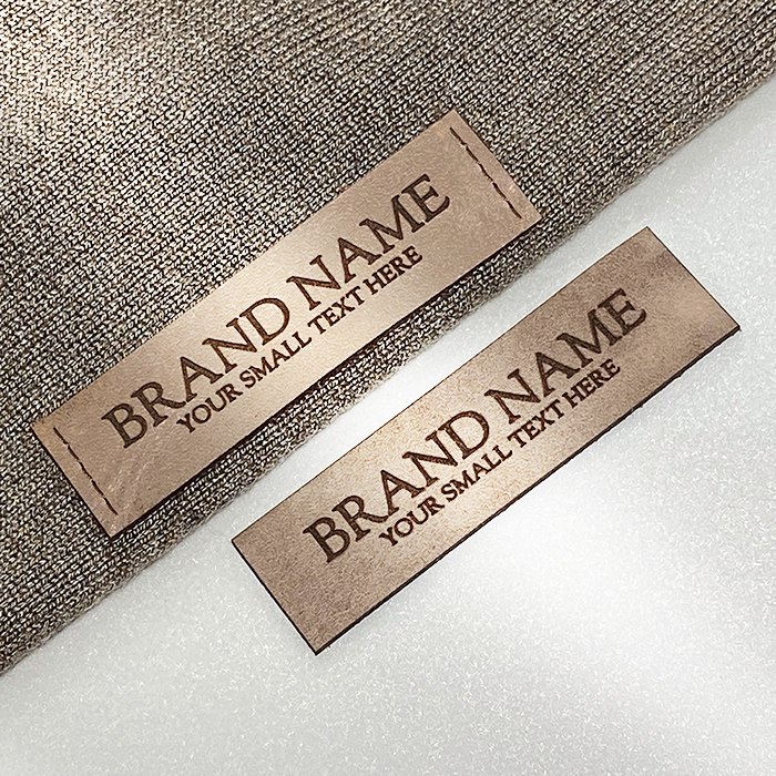 Etiqueta de cuero natural modelo EP-M55 para ropa, bolsos y otros complementos de vestir, personalizada mediante grabado láser con el nombre de la marca. Este modelo de etiqueta de cuero está fabricado en cuero natural de calidad superior, utilizando equipos de última generación y métodos profesionales de grabado o repujado láser.