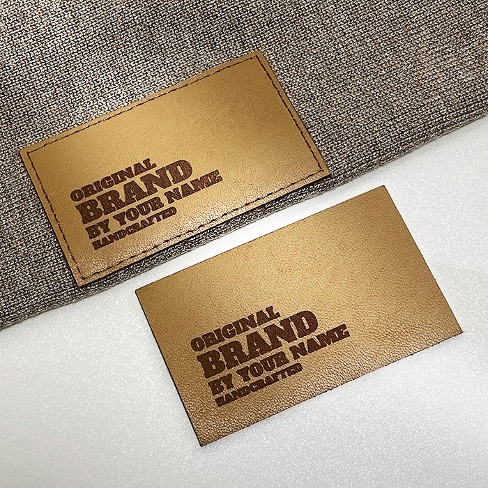 Etiqueta de marca en cuero natural EP-M68 para jeans, sudaderas, camperas, gorras, bolsos y otros, personalizada mediante grabado láser con el logo y datos del fabricante. Este modelo de etiqueta de cuero está fabricado en cuero natural de calidad superior, utilizando equipos de última generación y métodos profesionales de grabado o repujado láser.