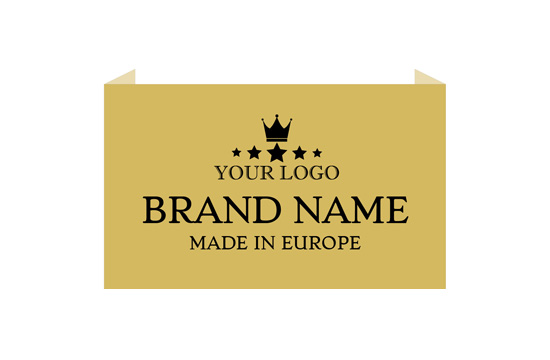 Etiqueta con un diseño elegante, bordada Digital en distintos colores, modelo Royal Style, personalizada con nombre y el emblema de la marca, diseñada para ser tejida en una gama variada de prendas de vestir para damas y caballeros. Este modelo de etiqueta textil está hecho de materiales de alta calidad, utilizando las tecnologías más avanzadas en el campo del bordado digital a nivel industrial.