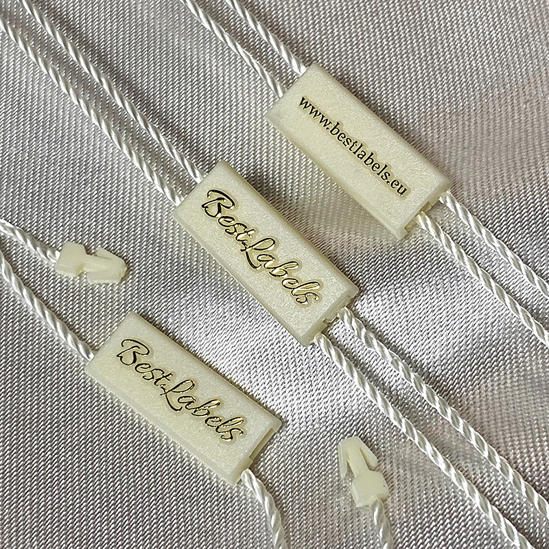 Sello personalizado de etiquetas de plástico ST-M131 para los productos fashion, como ropa, calzado, bolsos, joyas, accesorios, etc.