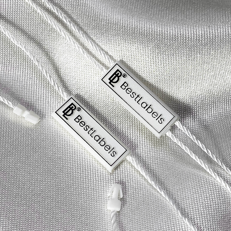 Sello personalizado de etiquetas de plástico ST-M144 para los productos fashion, como ropa, calzado, bolsos, joyas, accesorios, etc.