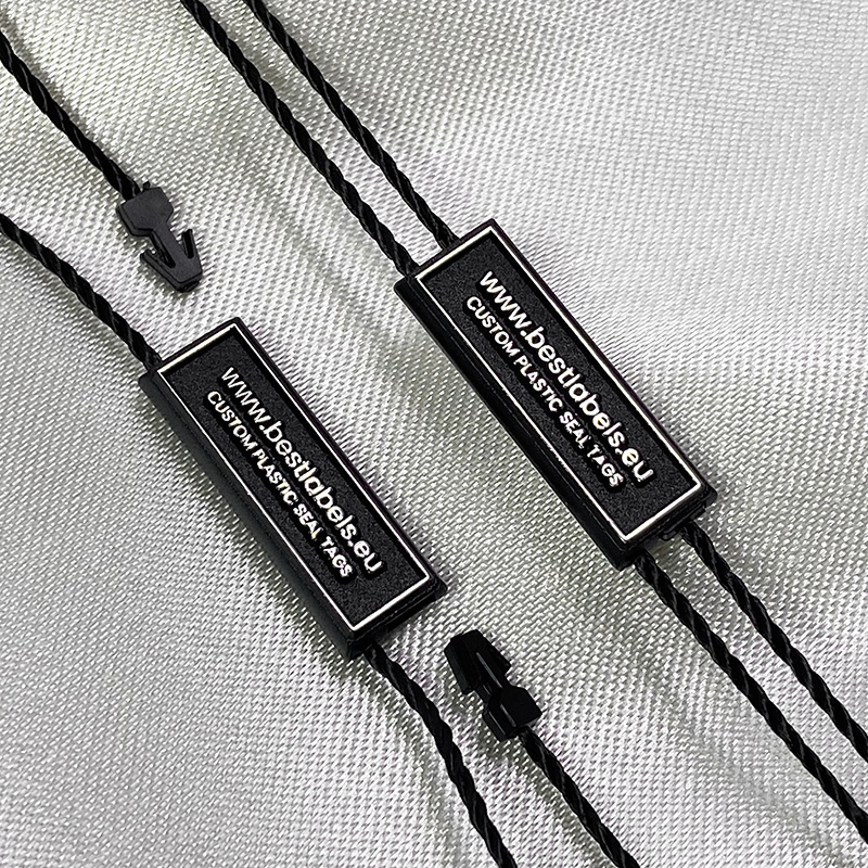 Sello personalizado de etiquetas de plástico ST-M146 para los productos fashion, como ropa, calzado, bolsos, joyas, accesorios, etc.