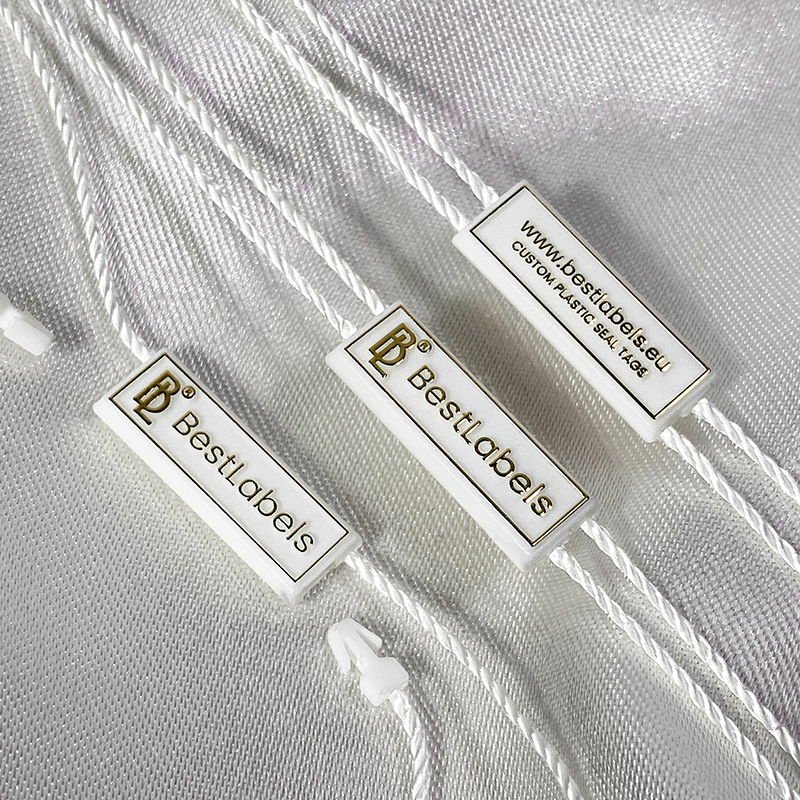 Sello personalizado de etiquetas de plástico ST-M152 para los productos fashion, como ropa, calzado, bolsos, joyas, accesorios, etc.