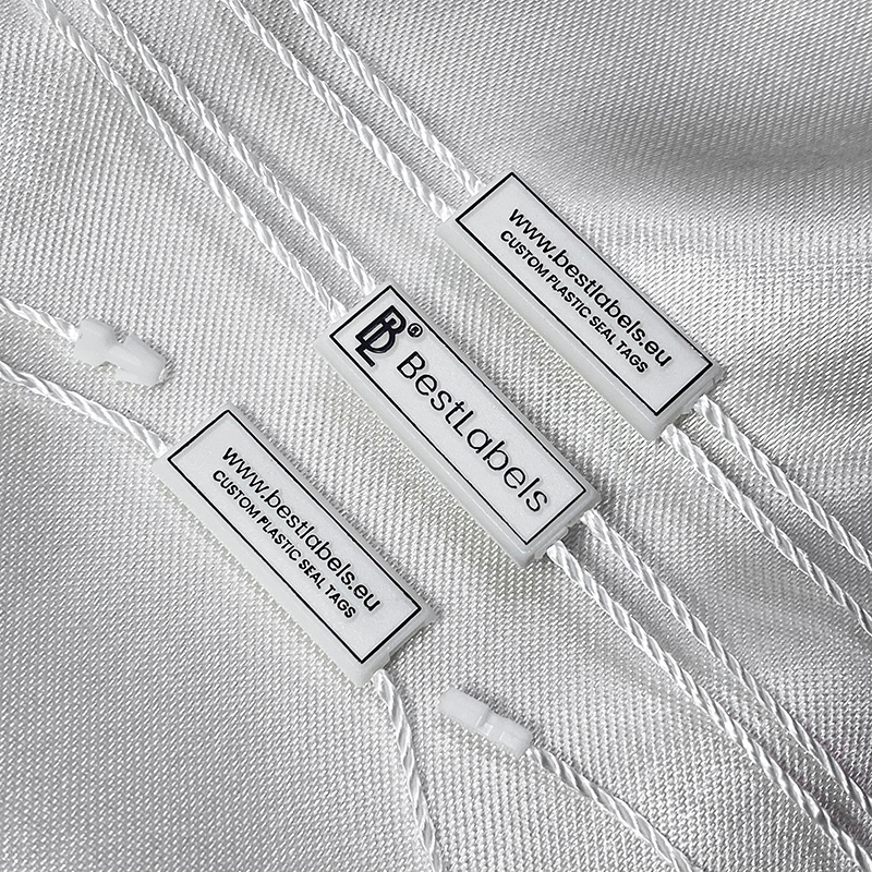 Sello personalizado de etiquetas de plástico ST-M154 para los productos fashion, como ropa, calzado, bolsos, joyas, accesorios, etc.
