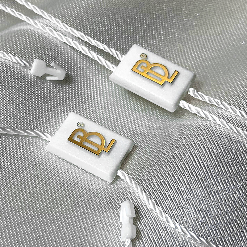 Sello de plástico ST-M162 de forma estándar rectangular, con dos extremos, uno para sellar la etiqueta y otro para sellar el producto, especialmente para ropa, calzado, bolsos, joyas, etc. Este modelo de sello está hecho de materiales de alta calidad, utilizando las tecnologías más avanzadas en el campo.