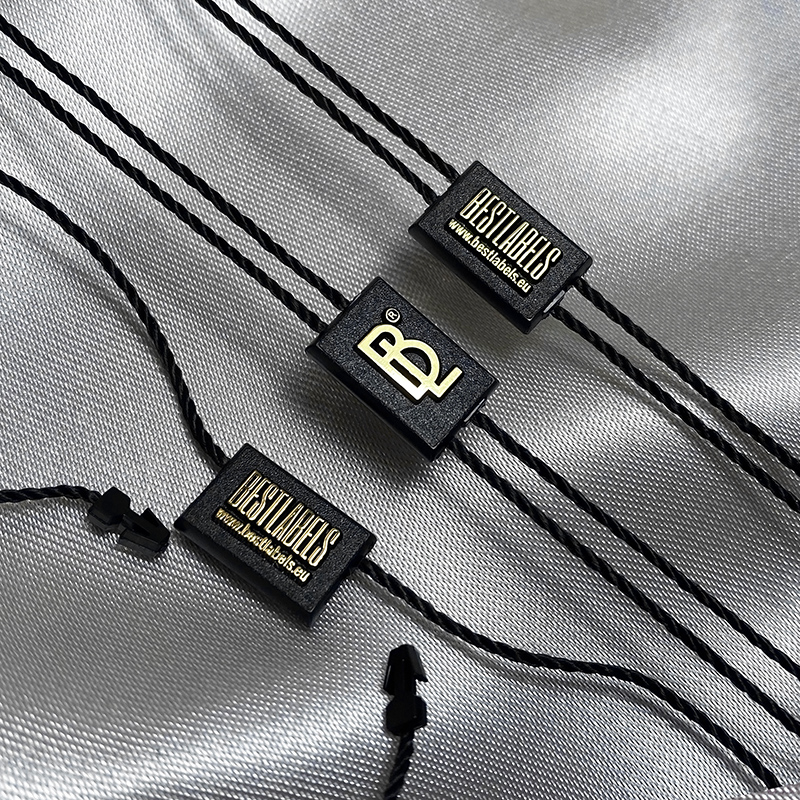 - Materiales: plástico (sello) y poliéster (cordón).