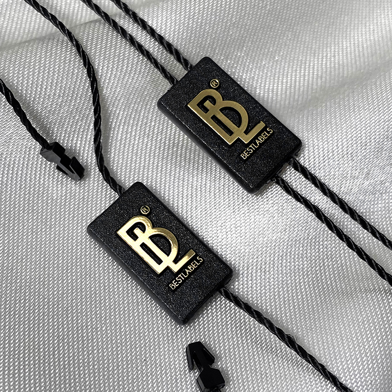 Sello personalizado de etiquetas de plástico ST-M180 para los productos fashion, como ropa, calzado, bolsos, joyas, accesorios, etc.